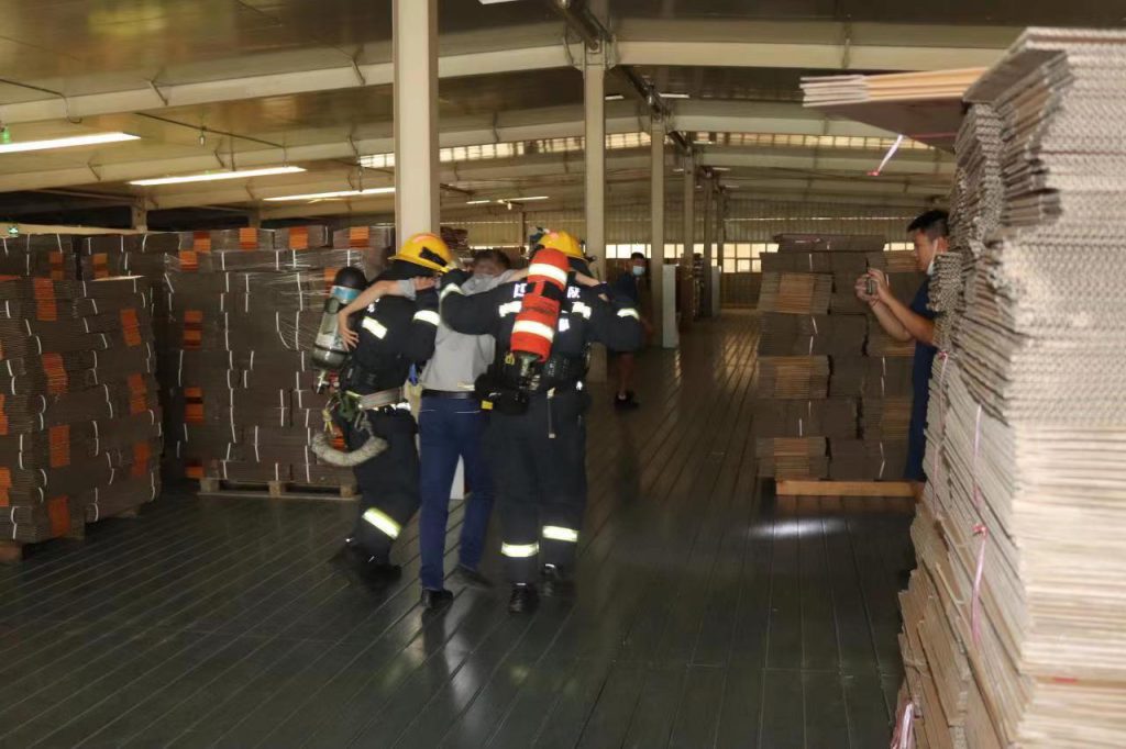 ? ? ? ?演練模擬丁點(diǎn)兒股份成品倉(cāng)庫(kù)內(nèi)出現(xiàn)火情并迅速向周?chē)鷶U(kuò)散蔓延,導(dǎo)致1名職工被困成品倉(cāng)庫(kù)。
