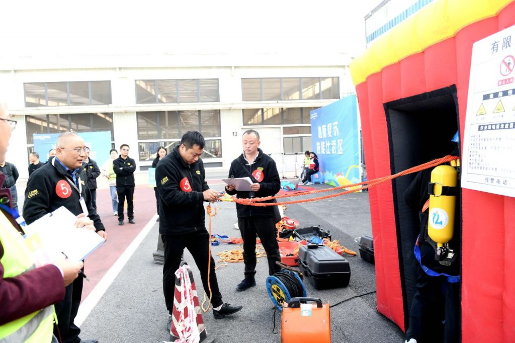 本次比賽設(shè)置了工傷預(yù)防知識競答、受限空間作業(yè)、火情處置及心肺復(fù)蘇四個比賽項目。在理論知識競賽環(huán)節(jié),各隊伍參賽選手全神貫注,積極搶答,現(xiàn)場氣氛緊張而活躍;在實操技能競賽環(huán)節(jié),參賽選手們膽大心細,嚴守操作規(guī)程,展示出專業(yè)的職業(yè)素養(yǎng)和嫻熟的技能技術(shù)。