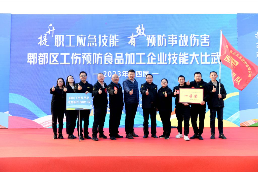 經(jīng)過激烈角逐,丁點兒食品代表隊以扎實的理論知識、熟練的操作技能,榮獲郫都區(qū)工傷預(yù)防食品加工企業(yè)技能大比武一等獎!
