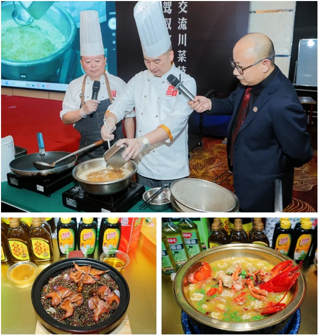 活動中,廣都國際酒店行政總廚劉軍、熙蜀印象行政總廚和博、中國烹飪大師劉全剛用丁點兒青花椒麻辣醬、藤椒油、金湯酸菜醬烹飪了滾式焰火鵪鶉、豆湯五常米淋波龍等菜品,其精湛的廚藝和獨到的美食見解,為參會者們帶來了一場視覺與味覺的雙重盛宴。他們不僅傳授了烹飪技巧,更分享了背后的創(chuàng)意思路,讓大家在品味美食的同時,也能創(chuàng)造出屬于自己的獨特美味。